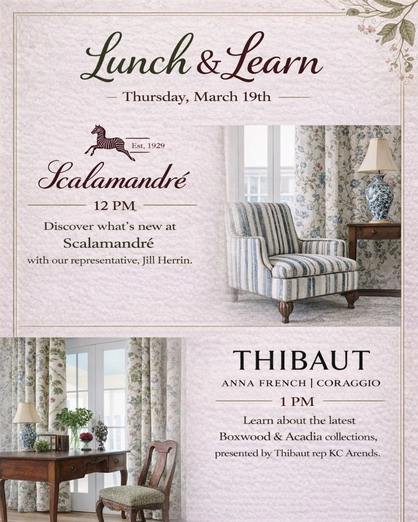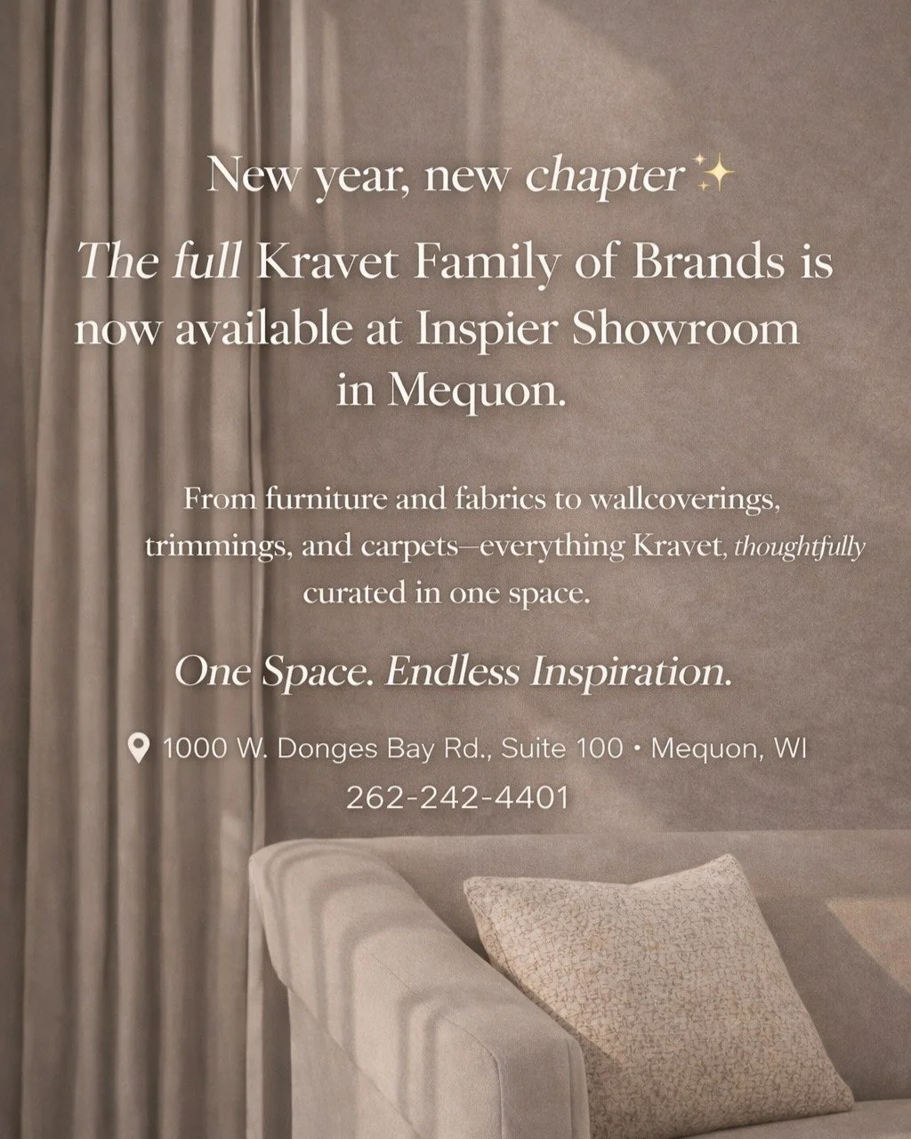 In’spier began with a vision to serve as a showroom of distinction exclusively for the design trade. Located in Mequon, we offer Wisconsin design professionals a nearby source for the lines and materials they often have to travel long distances to find. In’spier provides a comprehensive selection of fabric, trim, drapery hardware, furniture, rugs, wall coverings, hard lines, lighting, and accessories.
