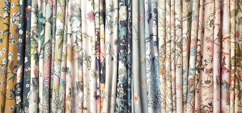 FABRICS ANNA FRENCH CLARKE & CLARKE GP & J BAKER KRAVET MAXWELL NOVEL RALPH LAUREN SCION TREND BRUNSCHWIG & FILS COWTAN AND TOUT HARLEQUIN LEE JOFA MOMEMTUM OSBORNE & LITTLE RM COCO STROHEIM VERVAIN CARNEGIE DESIGNERS GUILD HIGHLAND COURT LORCA MORRIS & CO. PINDLER SANDERSON THE ROYAL COLLECTION WILLIAM YEOWARD CHRISTIAN LACROIX FABRICUT JF FABRICS MATTHEW WILLIAMSON NINA CAMPBELL PERENNIALS FABRICS SCALAMANDRE THIBAUT ZOFFANY We can also assist you with sampling and ordering fabrics from: • NORBAR • SCHUMACHER • STOUT